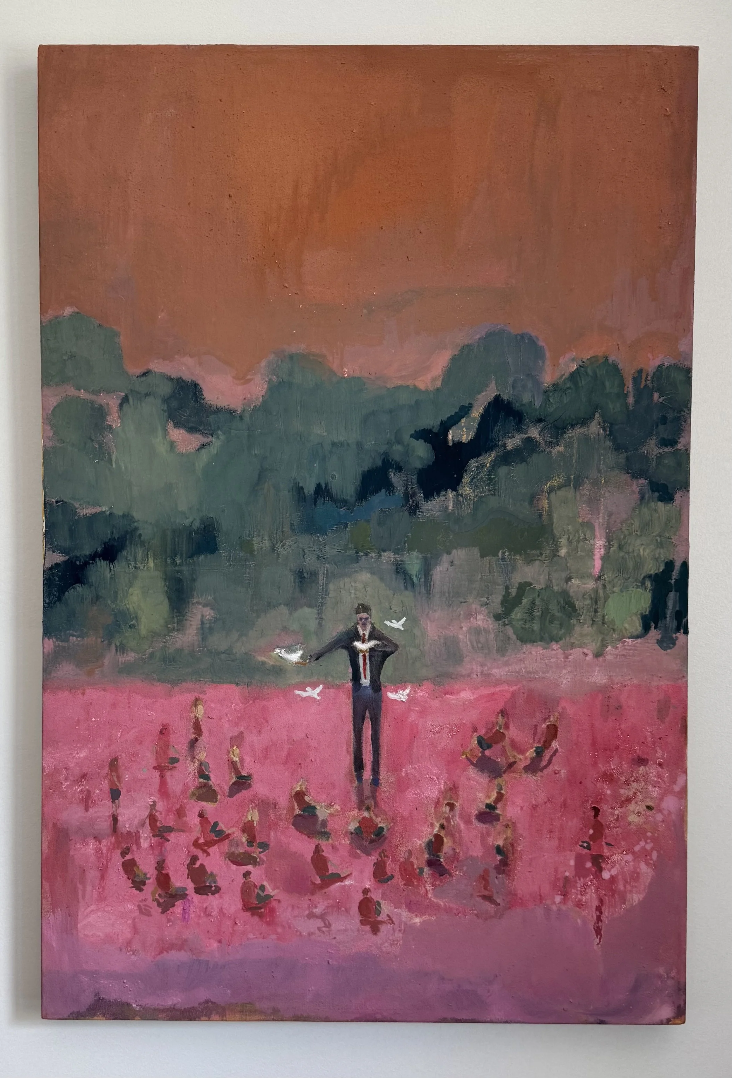 Ben Schlidt (b. 1999) is an American painter whose work emerges through the distillation of memory and surface. Influenced by enduring figurative traditions, his paintings begin with found or personal imagery, which he then disrupts through layered, marred, and materially assertive surfaces. In grappling with the physicality of paint, he explores the fallibility of memory—how it erodes, distorts, and reforms.